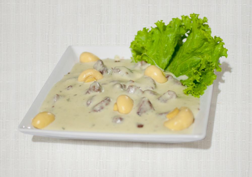 450 g de Filé mignon, molho gorgonzola e arroz branco.